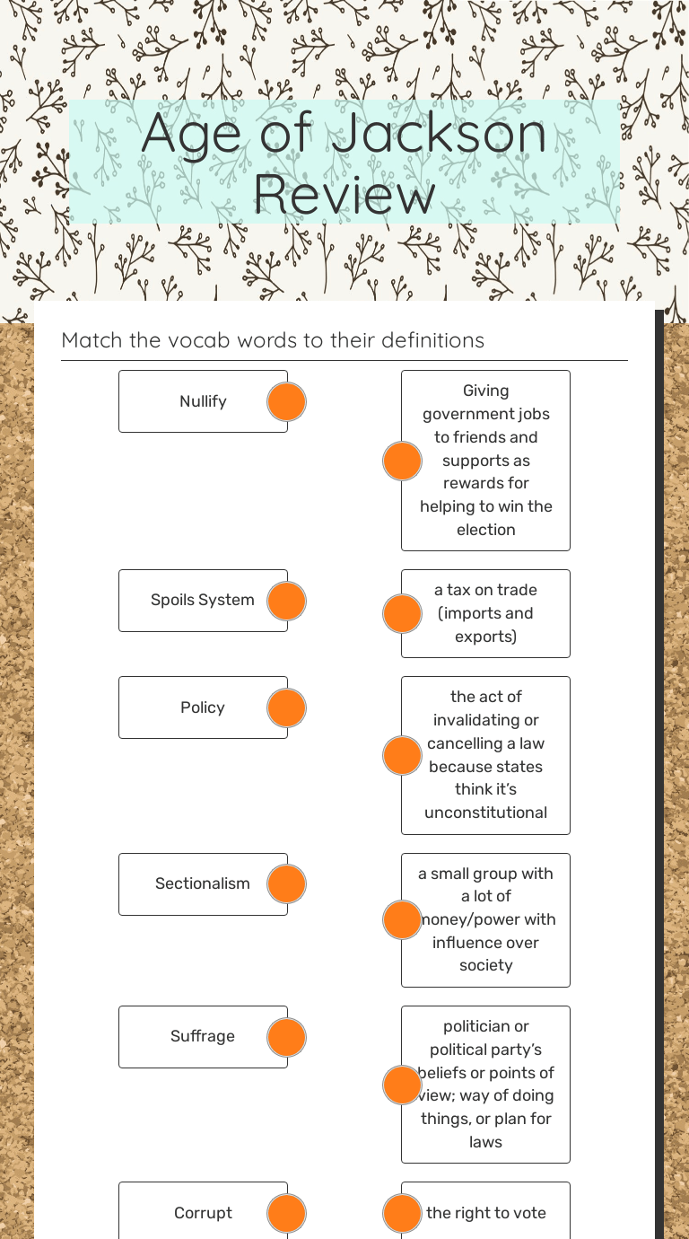 Browse age of jackson worksheets resources on teachers pay teachers, a marketplace trusted by millions of teachers for original . No longer were virginia presidents and . Andrew jackson's victory in the presidential election signaled the birth of a democratic spirit that brought both political and social change to the nation. Jacksonian democracy leaders think ordinary people should participate in government suffrage is expanded, immigrants and workers vote for jackson 2. Choose an answer and hit 'next'. Keywords relevant to the age of jackson worksheet answer key form. The 1828 election was portrayed by jackson's democrats as proof of the common people's right to pick a president. For a free guided viewing unit related to this video series, please follow the link below: Chapter 10 • the age of jackson. While other presidents belong to eras, . Davenport's custom paint & auto restorationage of jackson. Jackson's use of presidential powers laid the foundation of the modern presidency. Name class date section quiz the age of jackson section 1 fill in the blank for each.